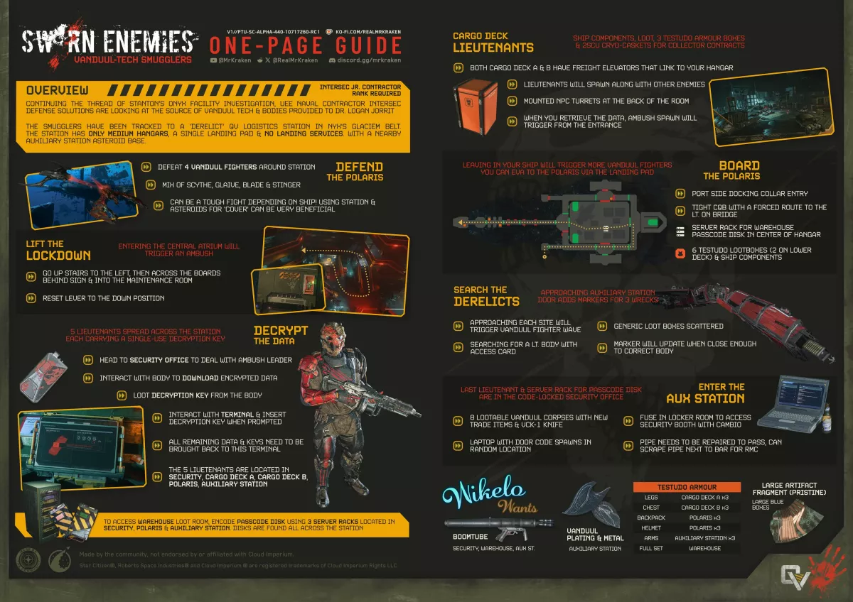 Poursuivant l’enquête menée dans les installations Onyx de Stanton, le contractant naval de l’UEE InterSec Defense Solutions se penche sur l’origine de la technologie vanduul et des corps fournis au Dr Logan Jorrit. MrKraken propose un nouveau one-page guide dédié à l’événement principal de la 4.4.0 !