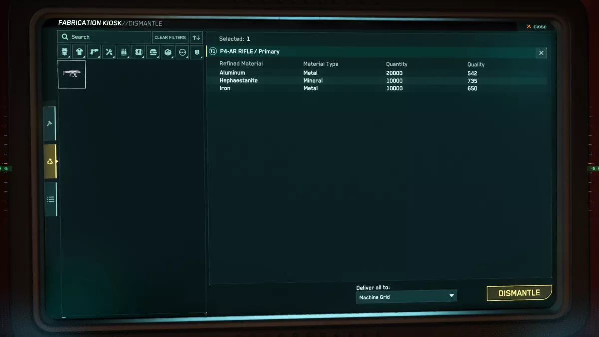Comme vous pouvez le deviner, le démontage vous permet de reconvertir des objets en ressources. Dans cette première version, vous pouvez démonter la plupart des objets FPS trouvés dans les boutiques, obtenus en butin ou fabriqués par les joueurs.