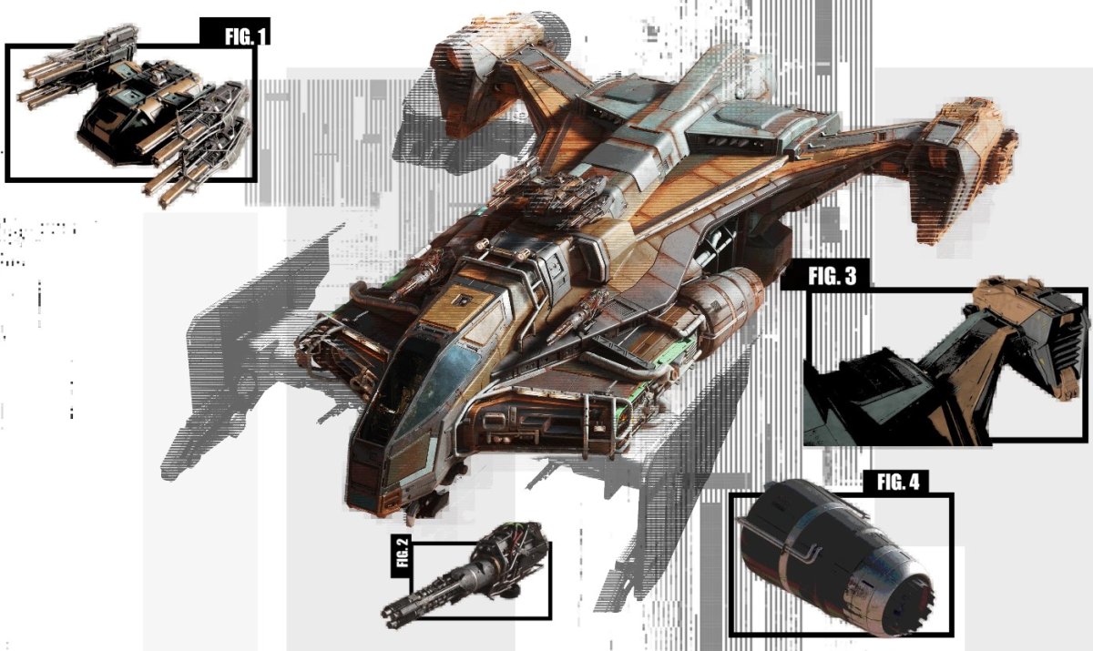 - FIG. 3 : Propulseurs VTOL réaffectés en propulseurs principaux arrière, provenant du Valkyrie.