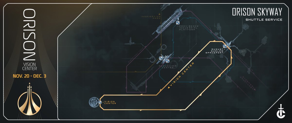 Pour la toute première fois, l'IAE se tient au Vision Center à Orison, sur la planète Crusader, amenant ainsi le plus grand salon aérospatial de l'univers dans l'une des villes les plus époustouflantes du système Stanton.