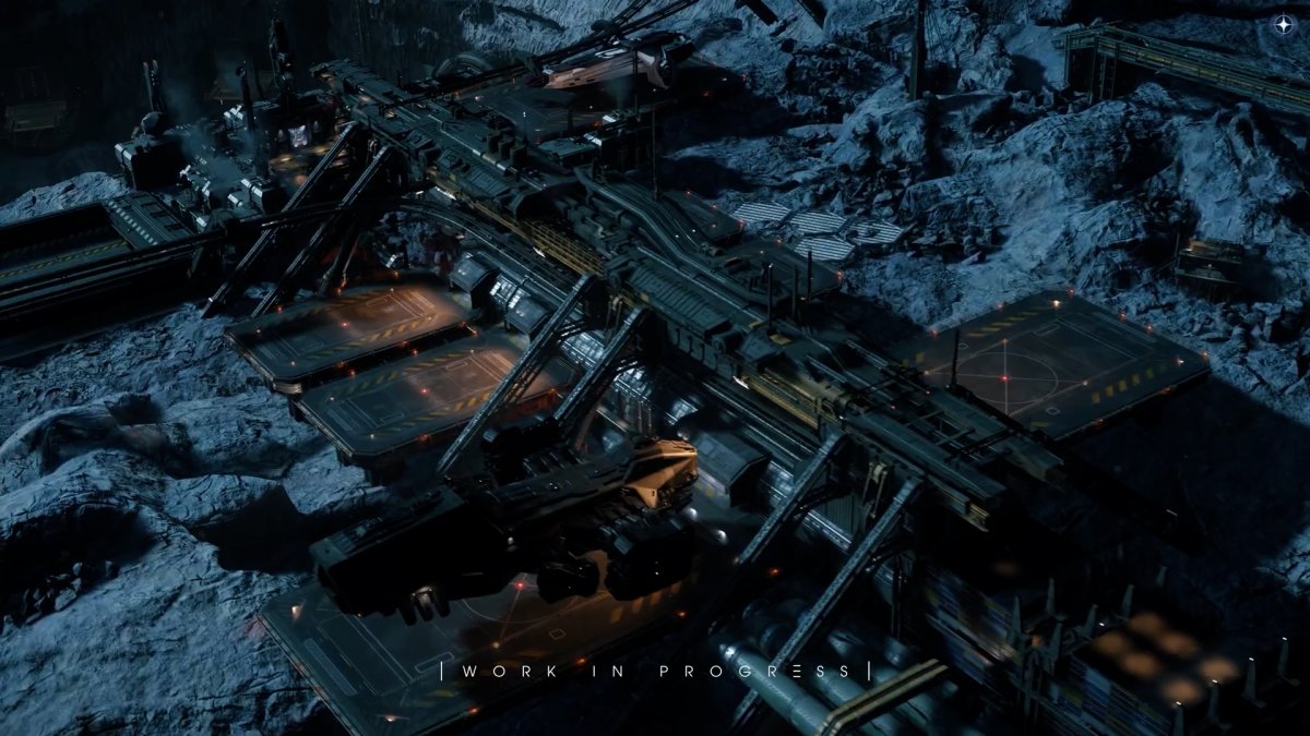- Au niveau 00, des sas d’air sécurisés permettent l’entrée directe des vaisseaux, avec un ATC assignant les positions pour éviter les collisions. Intégrés à la roche de l’astéroïde, ces pads accueillent les vaisseaux de taille moyenne à grande et facilitent les opérations logistiques standards : ravitaillement, réparations et embarquement/débarquement.