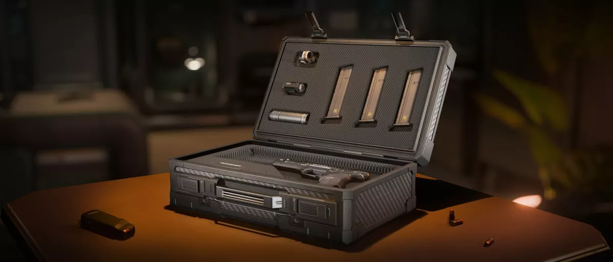 Restez discret tout en étant prêt à l'action grâce à cet étui élégant pouvant contenir un pistolet et plusieurs accessoires. Il est doté d'une coque extérieure rigide et d'un intérieur rembourré d'une mousse de polyuréthane rigide spéciale, conçue pour maintenir en toute sécurité une grande variété d'accessoires. L'étui comprend un pistolet Behring S-38 et des accessoires.