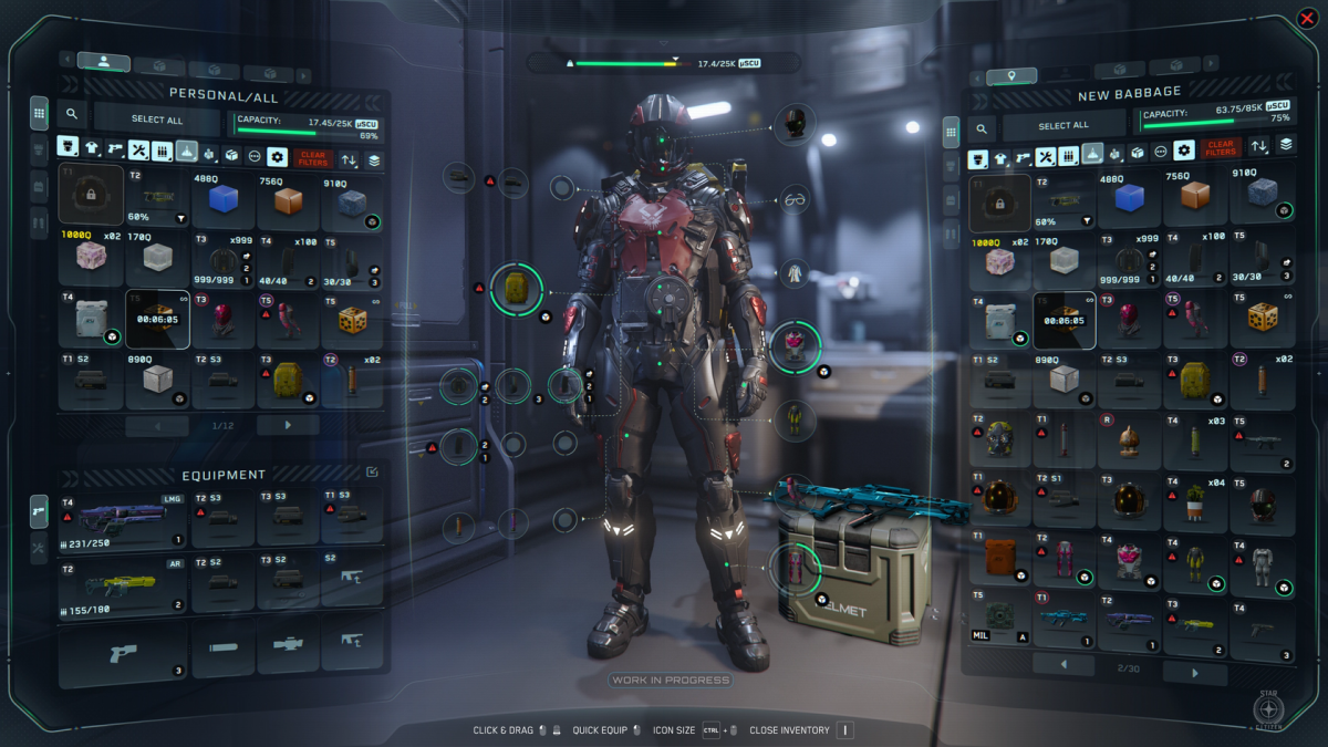 La refonte de l'interface utilisateur de l'inventaire est en cours, dans le but d'améliorer considérablement l'expérience utilisateur en introduisant plusieurs fonctionnalités clés. L'interface mise à jour comprendra des filtres pour objets améliorés qui permettront aux utilisateurs de trier et de localiser rapidement des équipements spécifiques, un bouton « Tout empiler », un filtre de recherche et un déplacement simplifié des objets entre les conteneurs pour une utilisation plus intuitive. De plus, le backend est en cours d'optimisation afin d'améliorer la vitesse et la réactivité du chargement des objets, réduisant ainsi les délais et rendant la gestion de l'inventaire plus fluide et plus efficace.